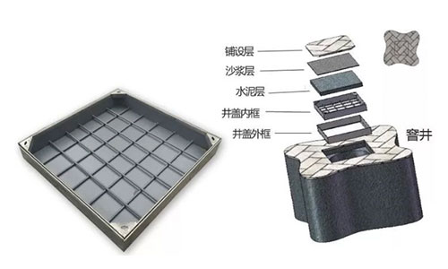 5.防盜:井蓋在井圈下設(shè)置了防盜暗盒、開(kāi)啟折板,替代了防盜鏈,起到了防盜作用。
