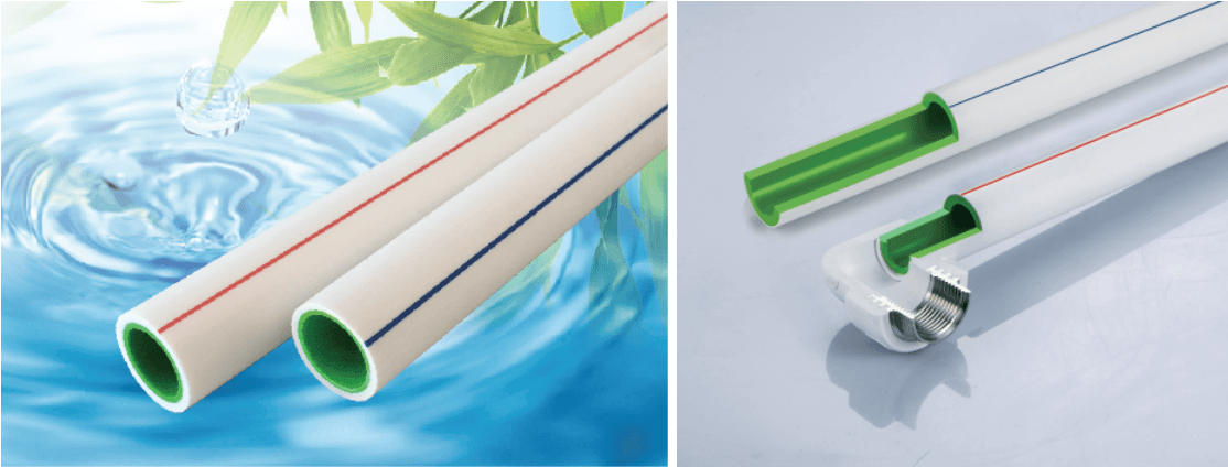 雙色PP-R給水管主要用于家庭的冷熱水管道系統(tǒng)和直接飲用的純凈水供水系統(tǒng)。因為管道采用雙層雙色的結構不易透光,不容易滋生細菌,能夠保證水質的清潔健康,